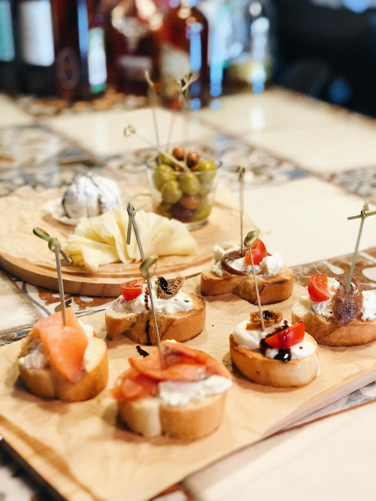 - Snacks servieren: Stelle eine Auswahl an Oliven, Käse, Crostini bereit.